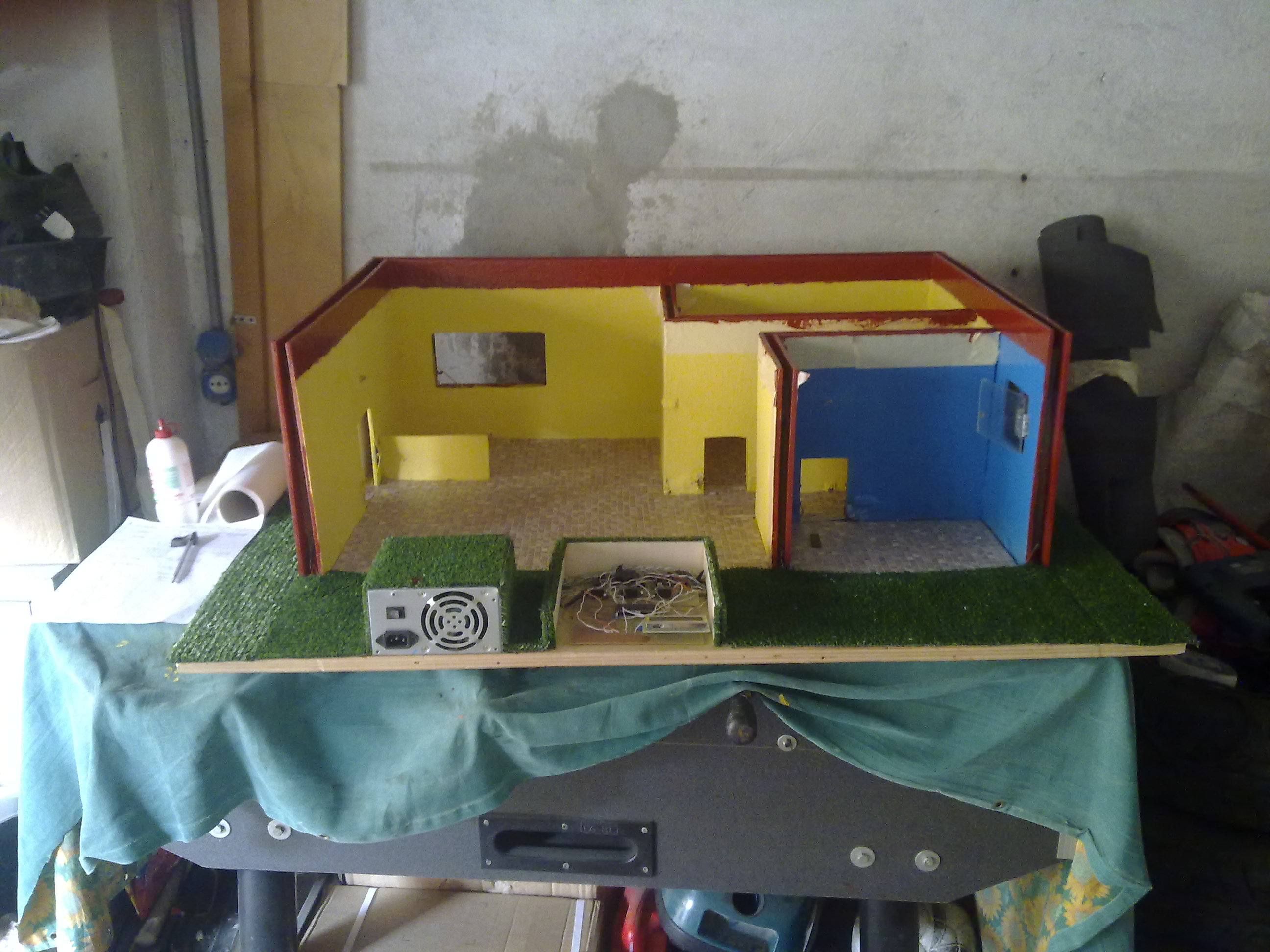 La casa è composta in legno compensato, gli schemi elettrici sono stati realizzati su basetta millefori.
