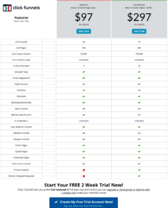 Registrati a ClickFunnels con il piano da 97$. Non preoccuparti, è gratis per i primi 14 giorni.